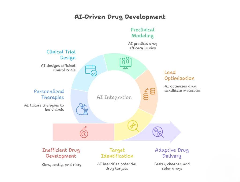 It is emphasized that AI’s role extends beyond target identification to encompass the entire drug development pipeline, including lead optimization, preclinical modeling, and clinical trial design. Meanwhile, it is underscored AI’s role in personalizing therapies through patient-specific data integration, thereby improving dosing accuracy and reducing systemic risks. The intersection of wet lab research and computational insights forms the bedrock of these innovations, fostering a more adaptive and efficient approach to drug delivery.2,3