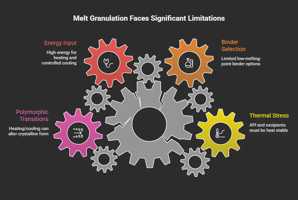 Despite its considerable advantages, melt granulation is not a universal panacea. It presents unique challenges that require careful consideration: